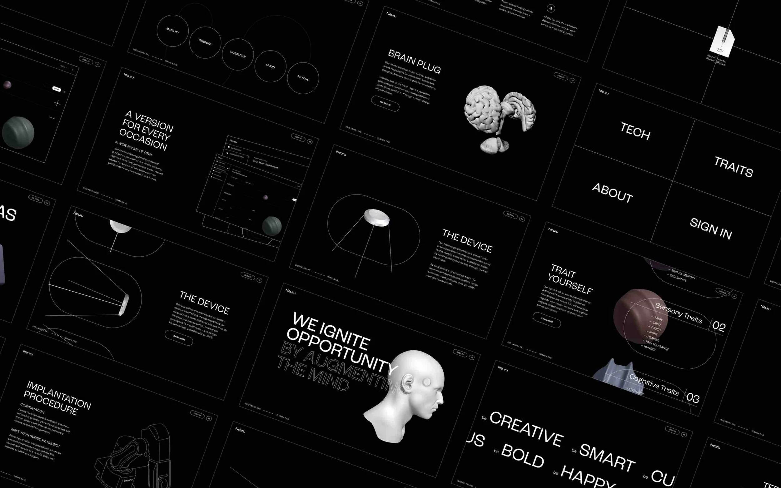 Designer Ada Rotomskytė forecasted a future scenario where wireless brain-machine interfaces are readily available and created a speculative biotech company called Neuru, with a goal to help people reach their full potential and treat brain disorders with Artificial Intelligence (AI) and Brain Machine Interface (BMI) technology.